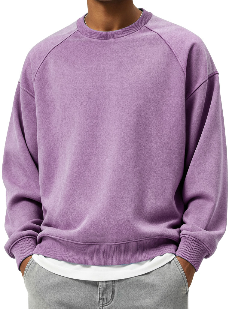 Men's Fashionable Sporty Distressed Long-Sleeve Crew Neck Sweatshirt