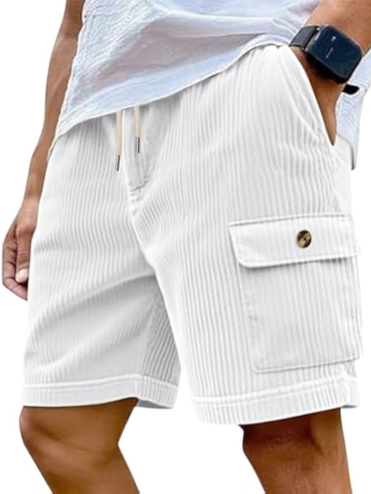 Men's Multi-pocket Corduroy Practical and Stylish Lace-up Stretch Loose Everyday Shorts