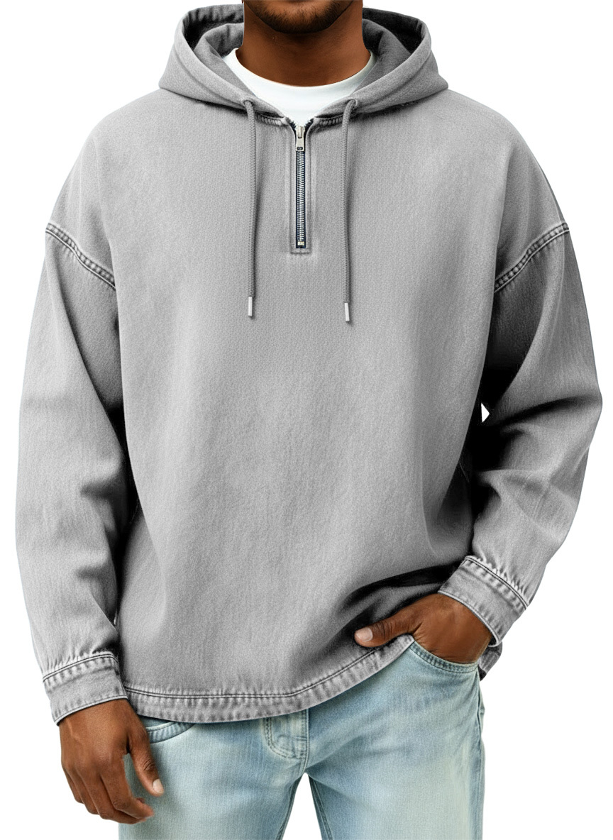 Men's Retro Casual Quarter Zip Hooded Sweatshirt