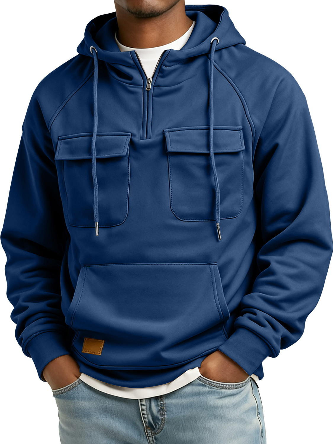 Men's Retro Zipper Double Pocket Embroidered Logo Casual Hoodie