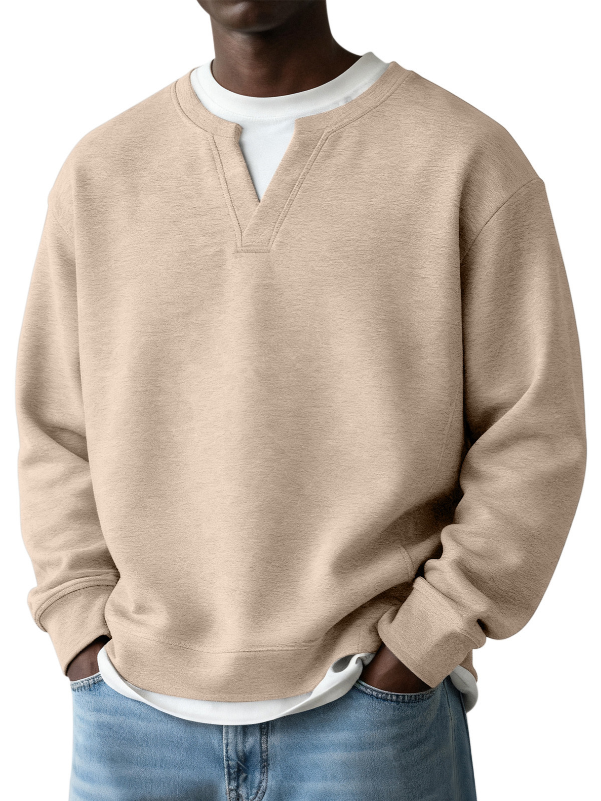 Men's Simple Casual Daily Solid Color Fake Two-piece Design Long-sleeved Sweatshirt