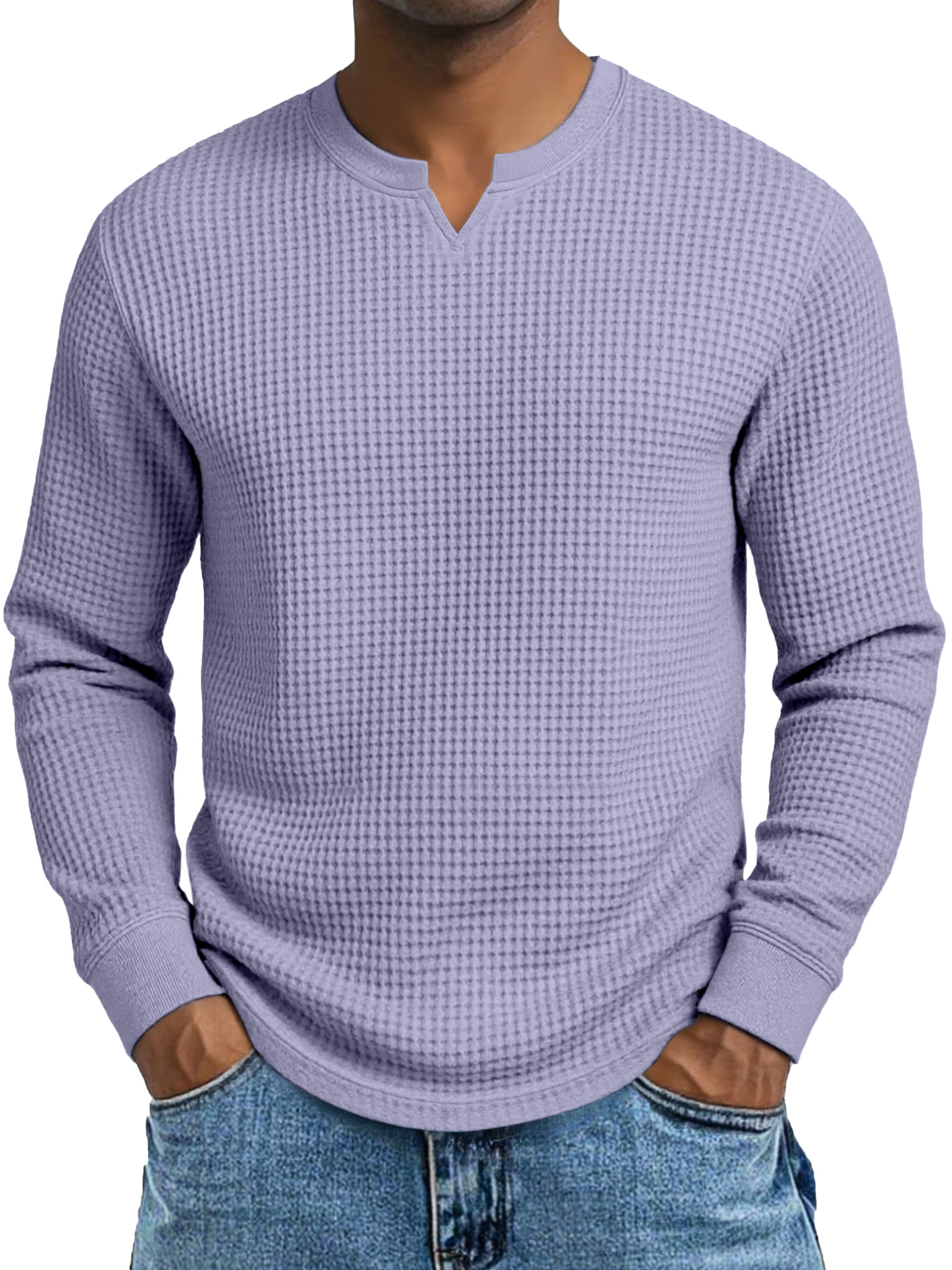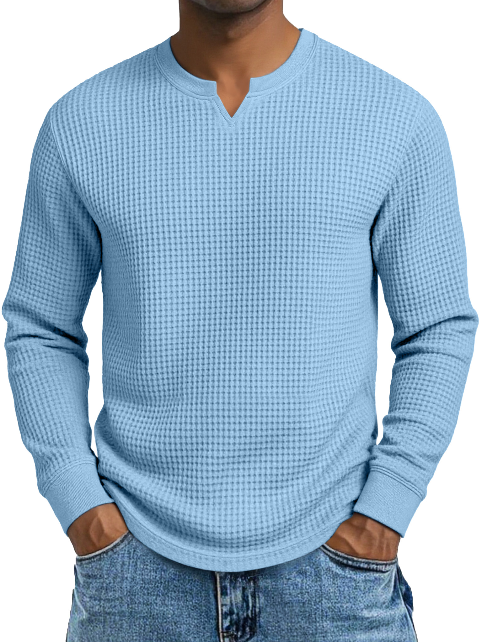 Men's Simple Casual Waffle Small V-Neck Long Sleeve T-Shirt