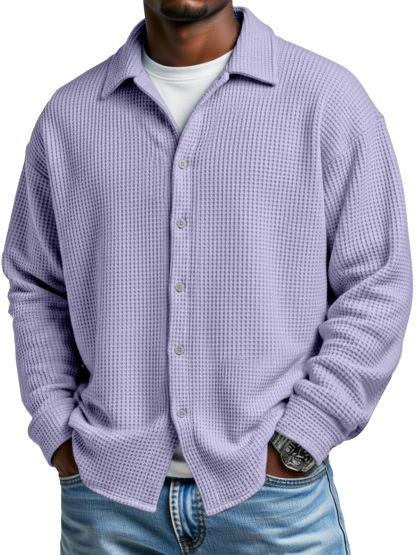 Men's Simple Solid Color Waffle Casual Loose Long-sleeved Shirt