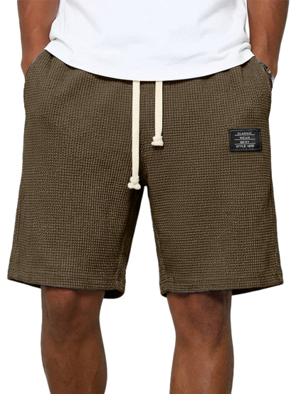 Men's Simple Waffle Embroidered Logo Casual Solid Color Shorts