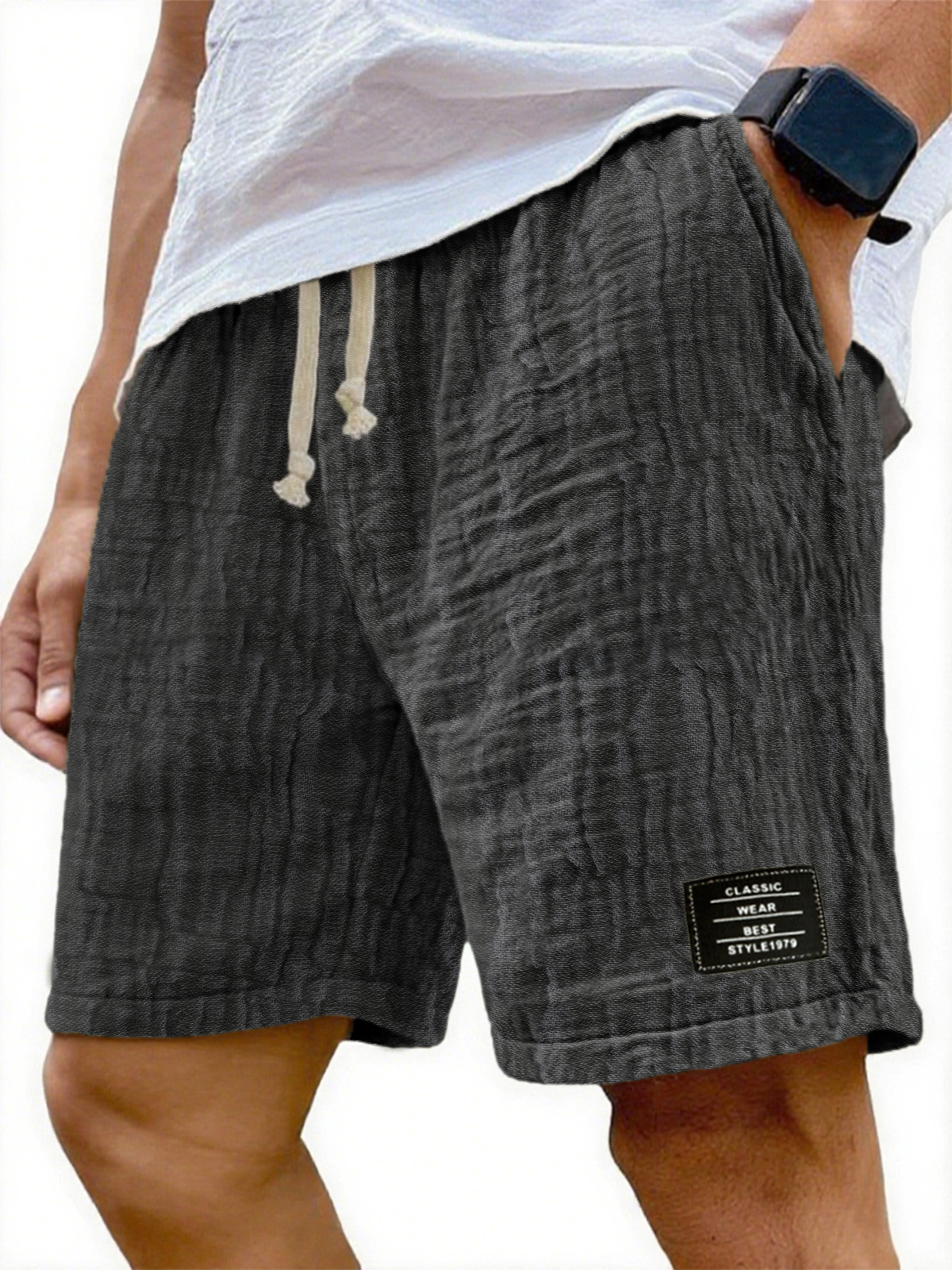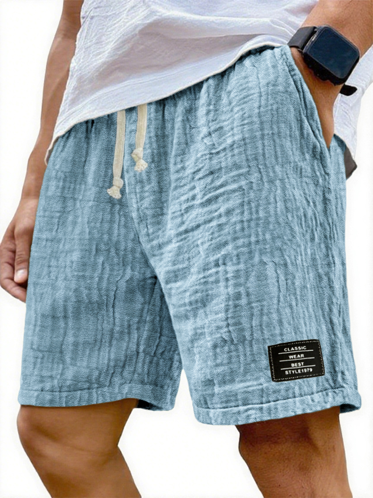 Men's Soft Crinkled Gauze Breathable Holiday Embroidery Lace-up Shorts