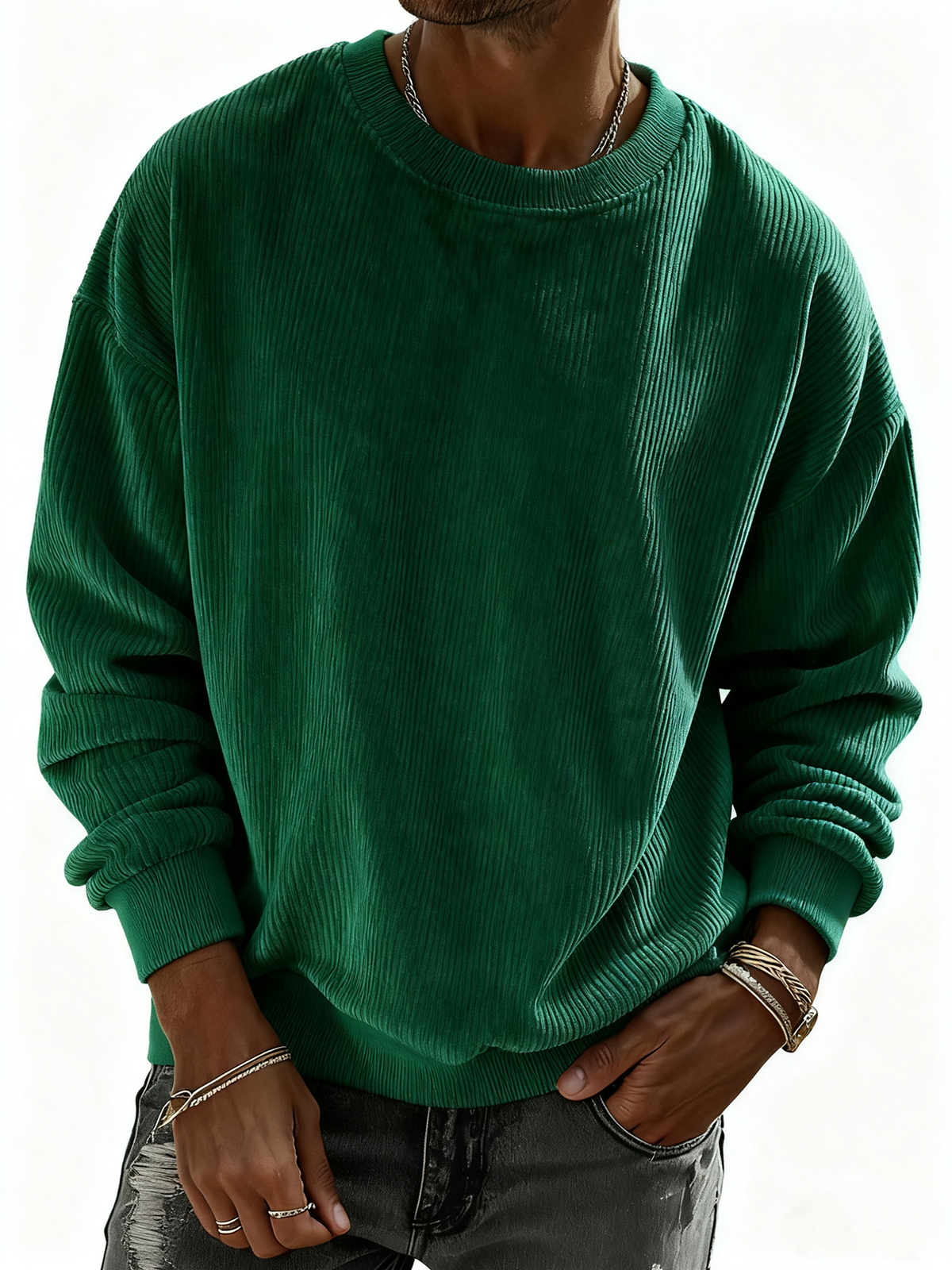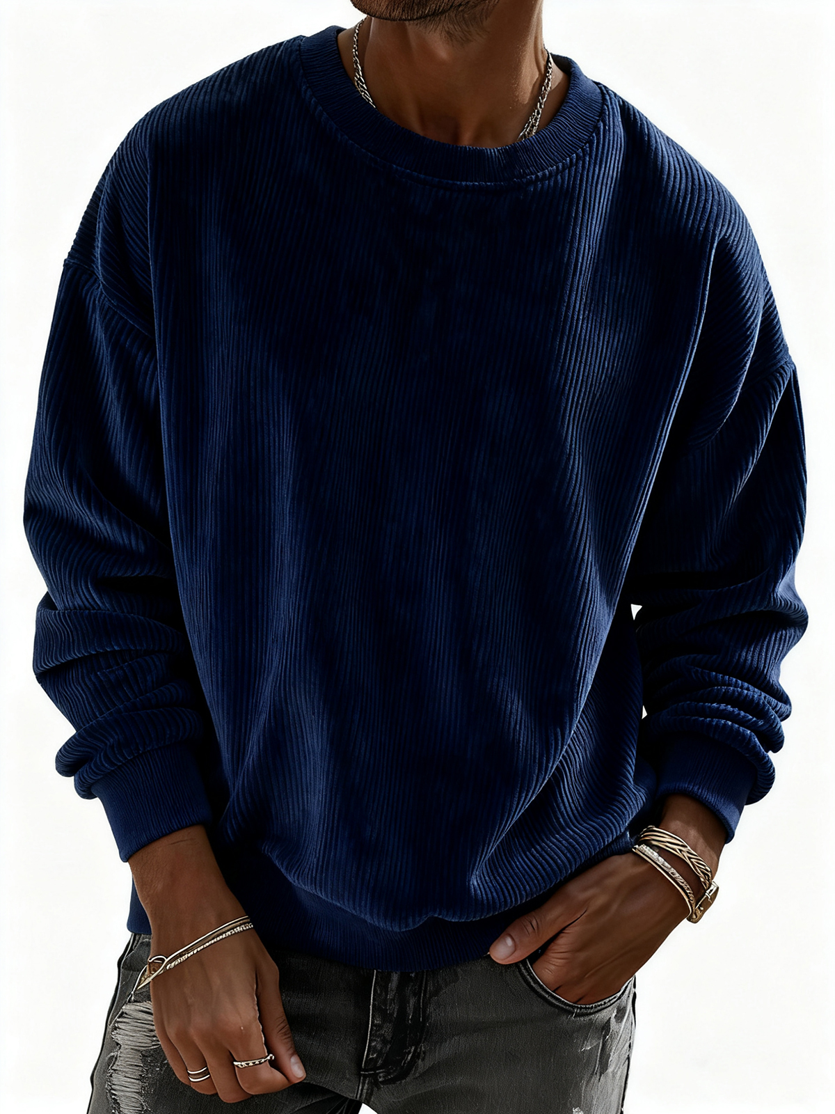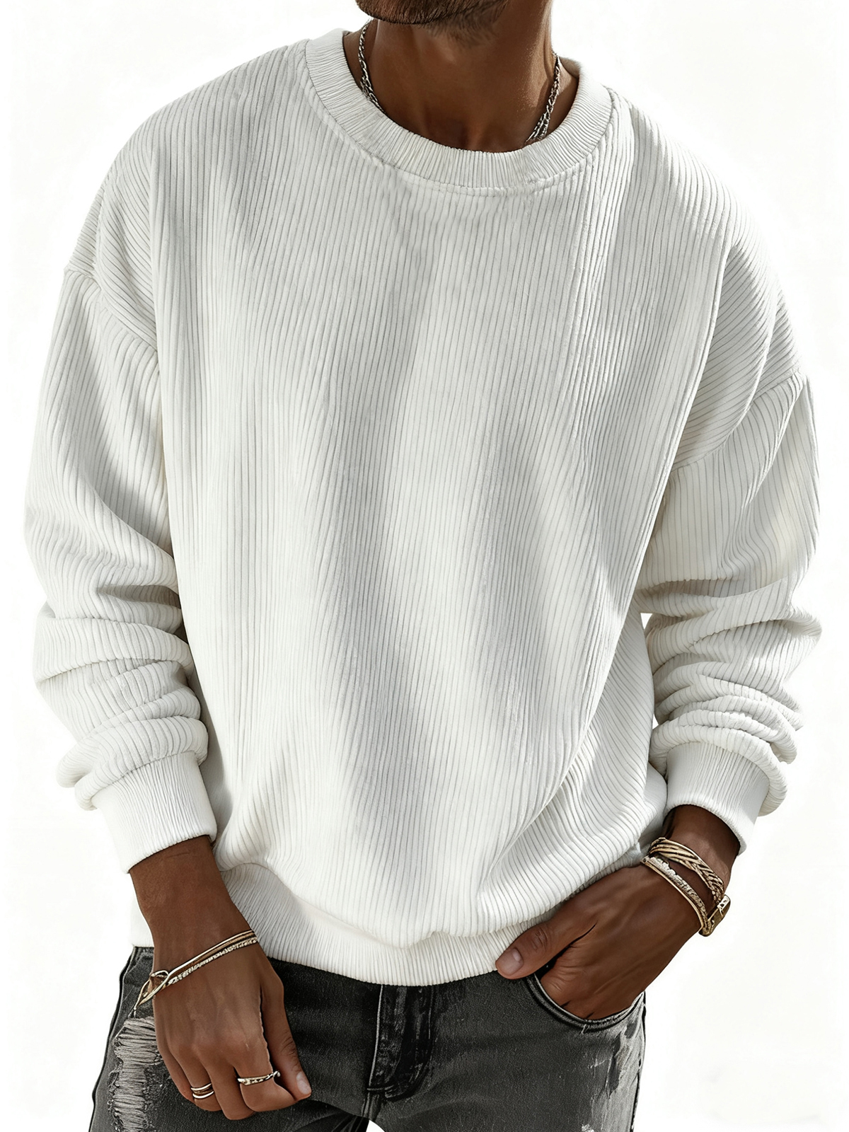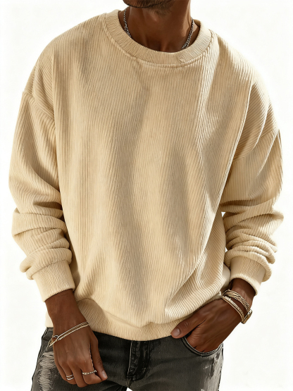 Men's Solid Color Corduroy Striped Pullover Sweatshirt