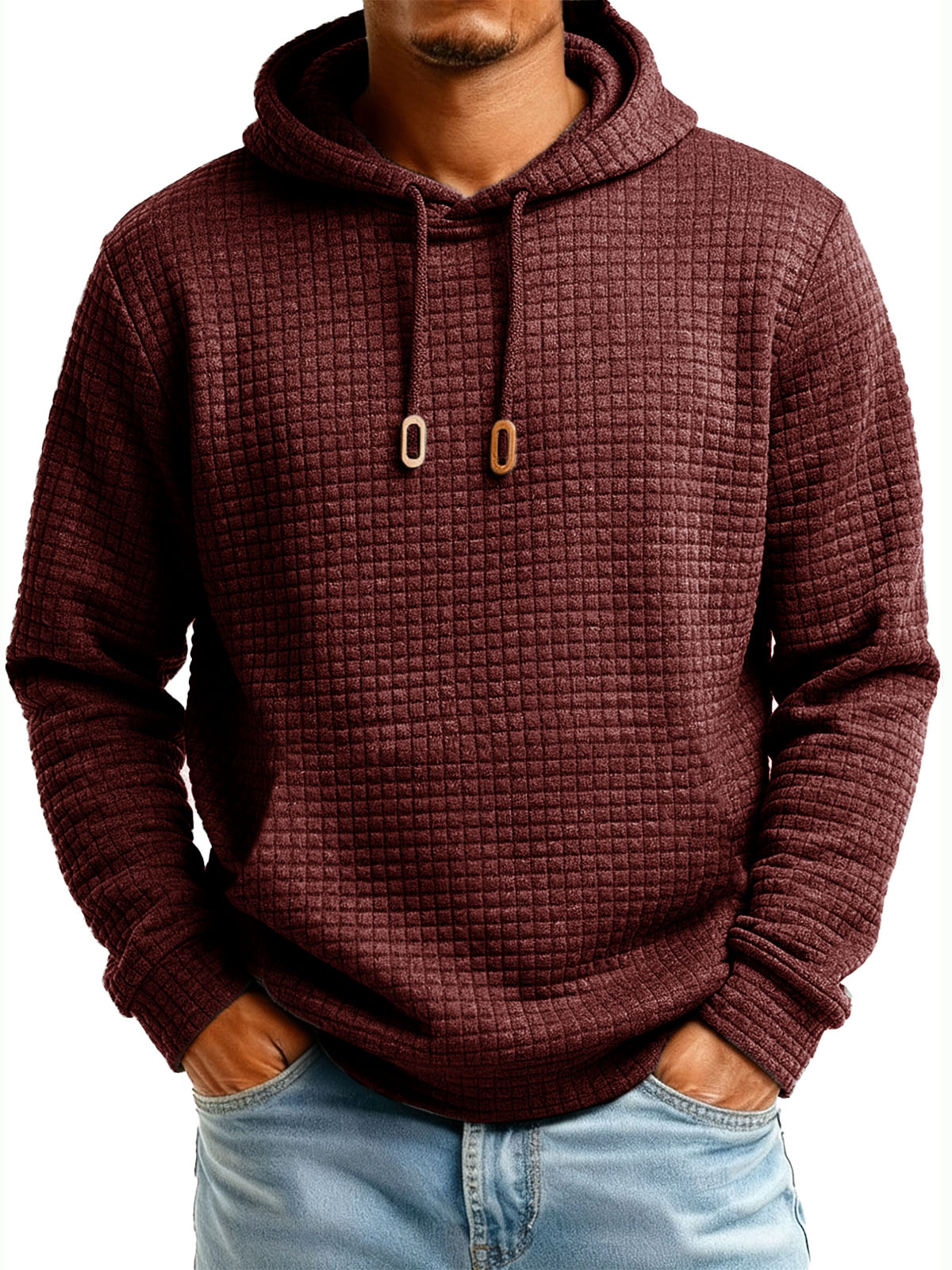 Men's Daily Loose And Simple Waffle Half-zip Stand Collar Long-sleeved Polo Shirt