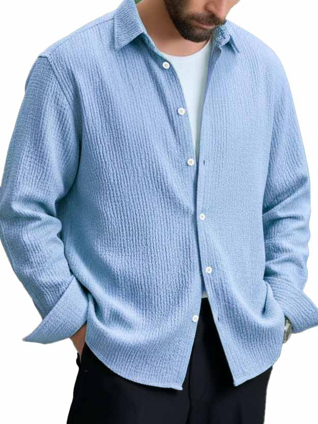 Men's Stylish Casual Pleated Lapel Long-sleeved Shirt