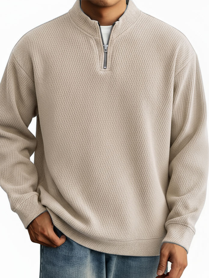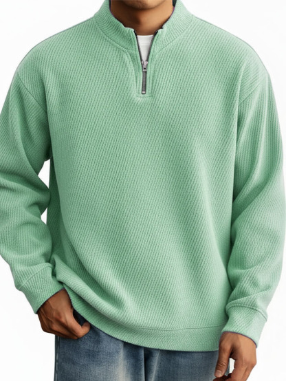 Men's Daily Loose And Simple Waffle Half-zip Stand Collar Long-sleeved Polo Shirt