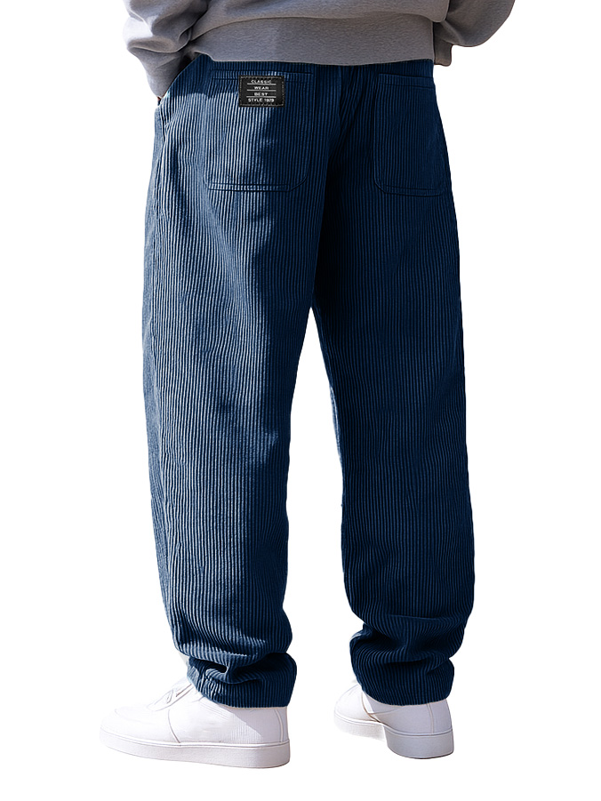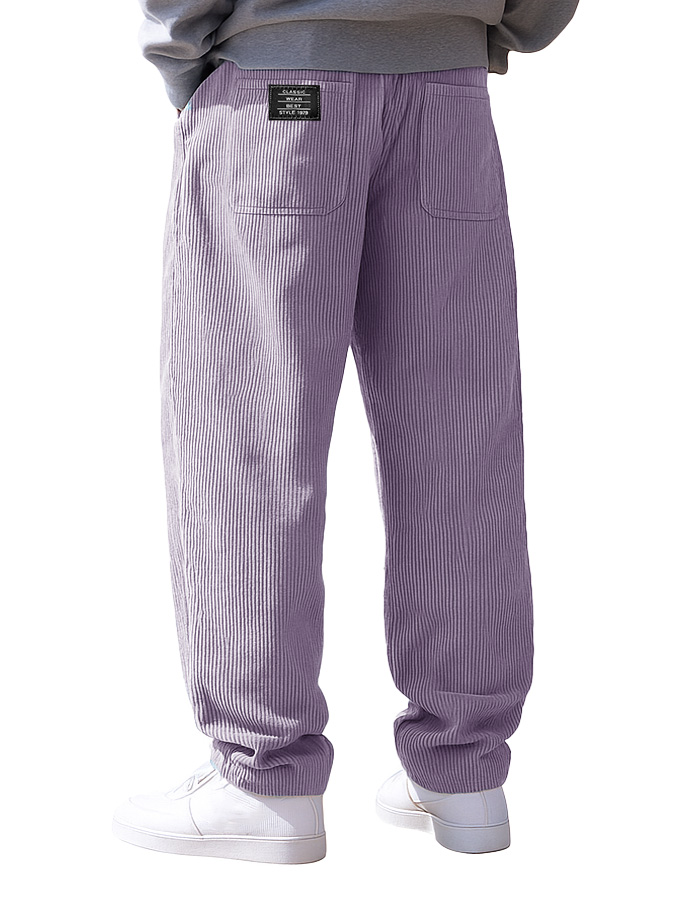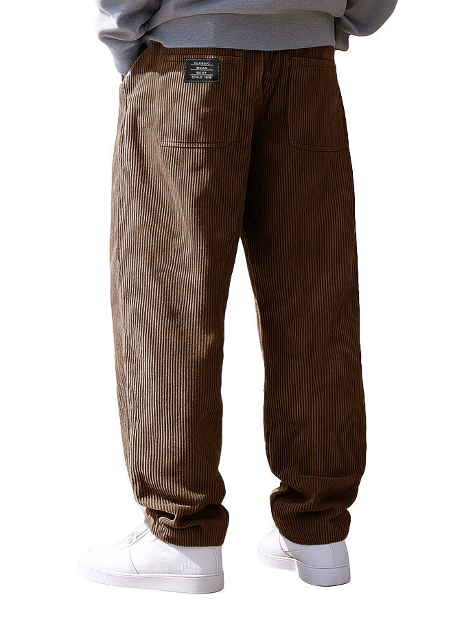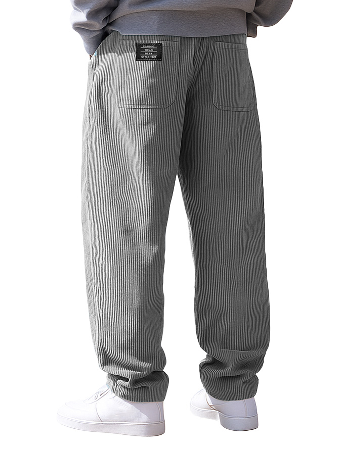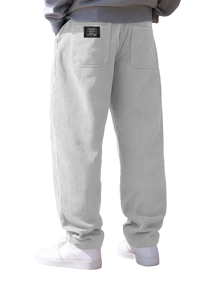 Men's Stylish Everyday Corduroy Fabric Pocket Loose Drawstring Elastic Waist Embroidered Logo Trousers
