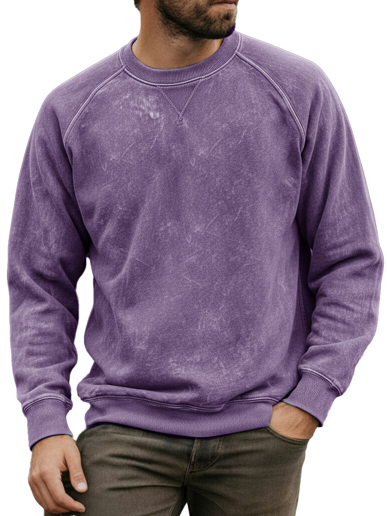 Men's Stylish Vintage Distressed Raglan Sleeve Long-sleeved Crewneck Sweatshirt
