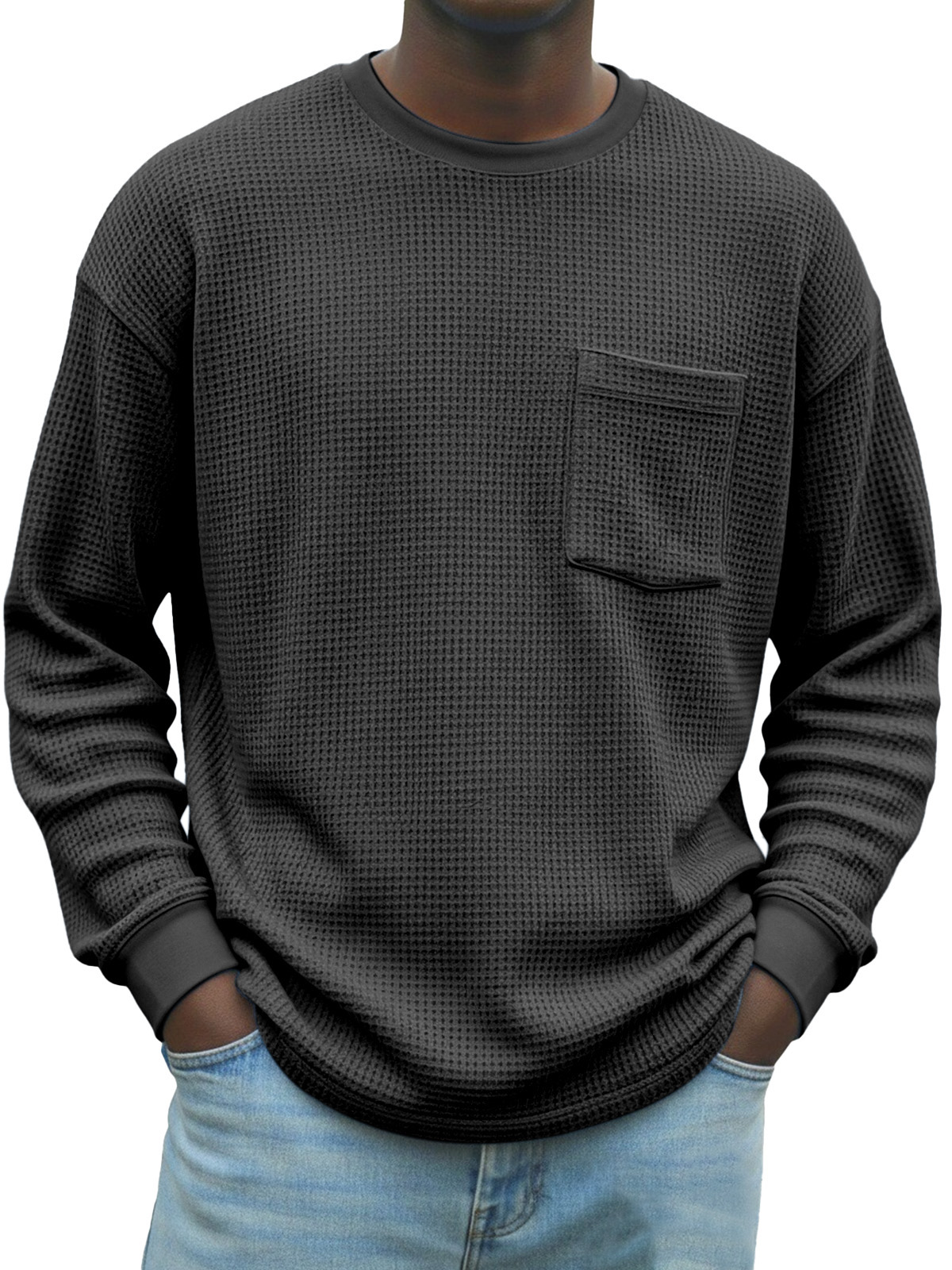 Men's Stylish Waffle-knit Pocket Long-sleeved Crew Neck T-shirt