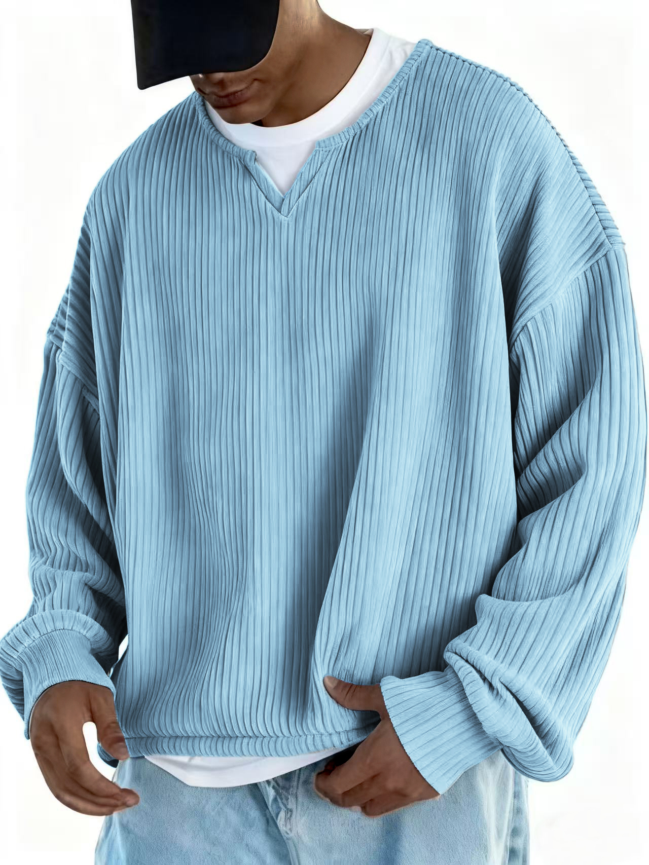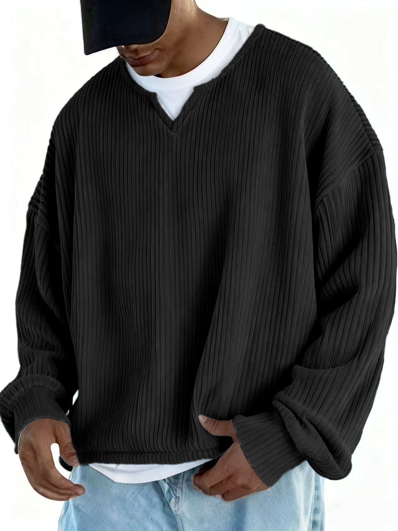Men's V-neck Notch Collar Ribbed Long-sleeved Pullover