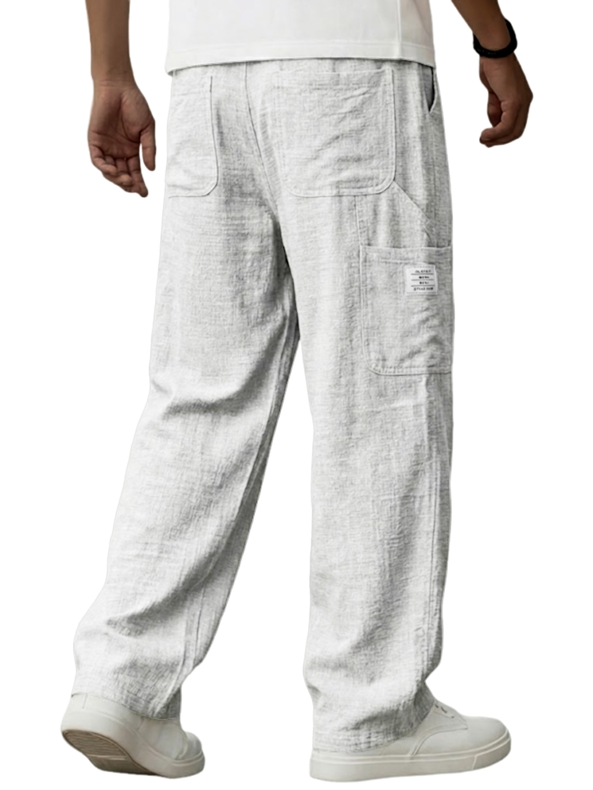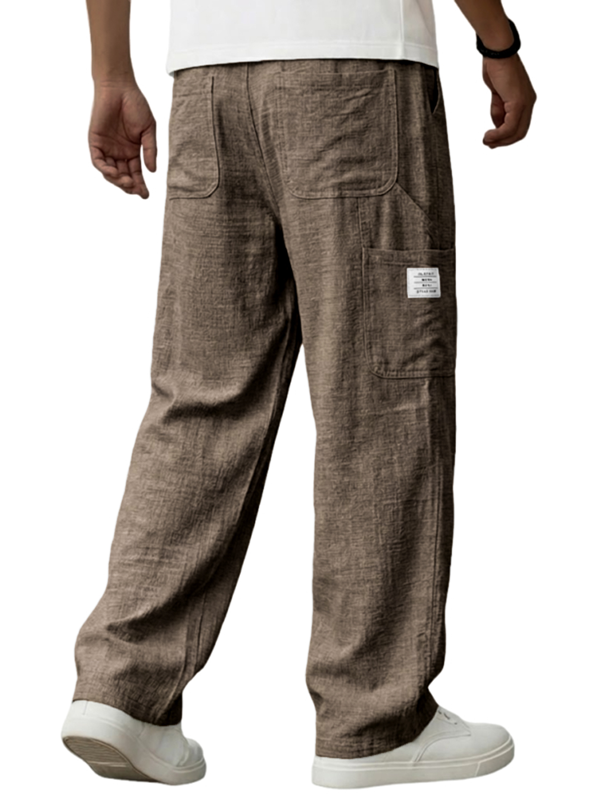 Men's Vintage Breathable Linen Multi-pocket Casual Embroidered Label Trousers