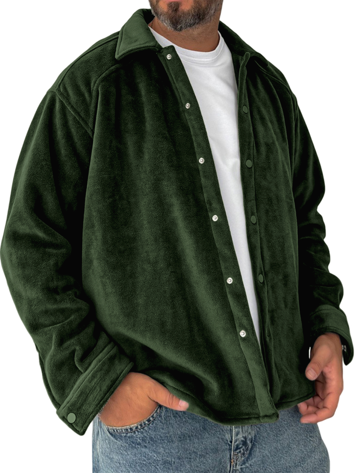 Men's Vintage Fleece Jacket Warm Casual Cardigan Shirt