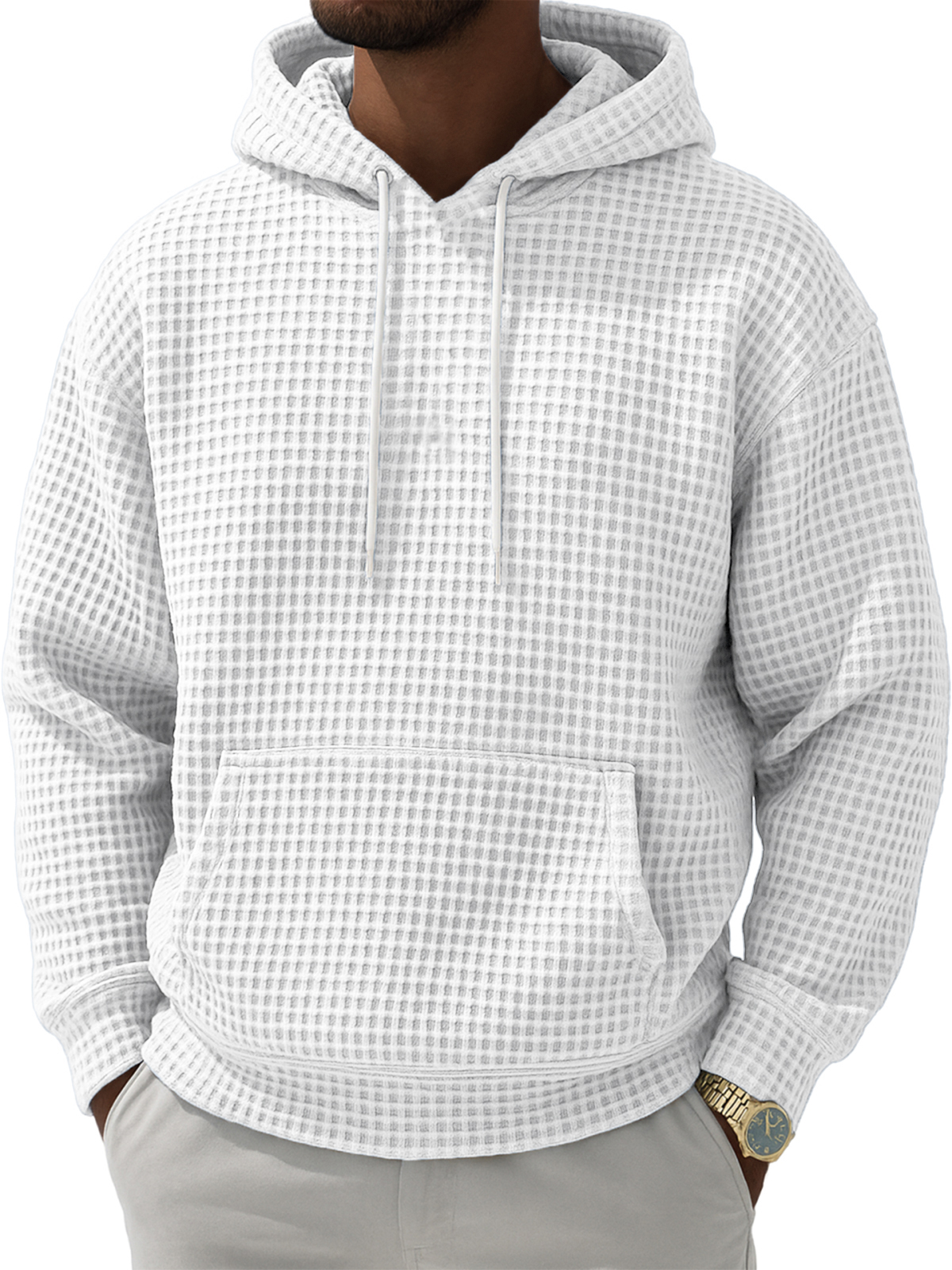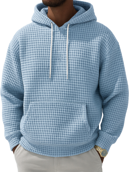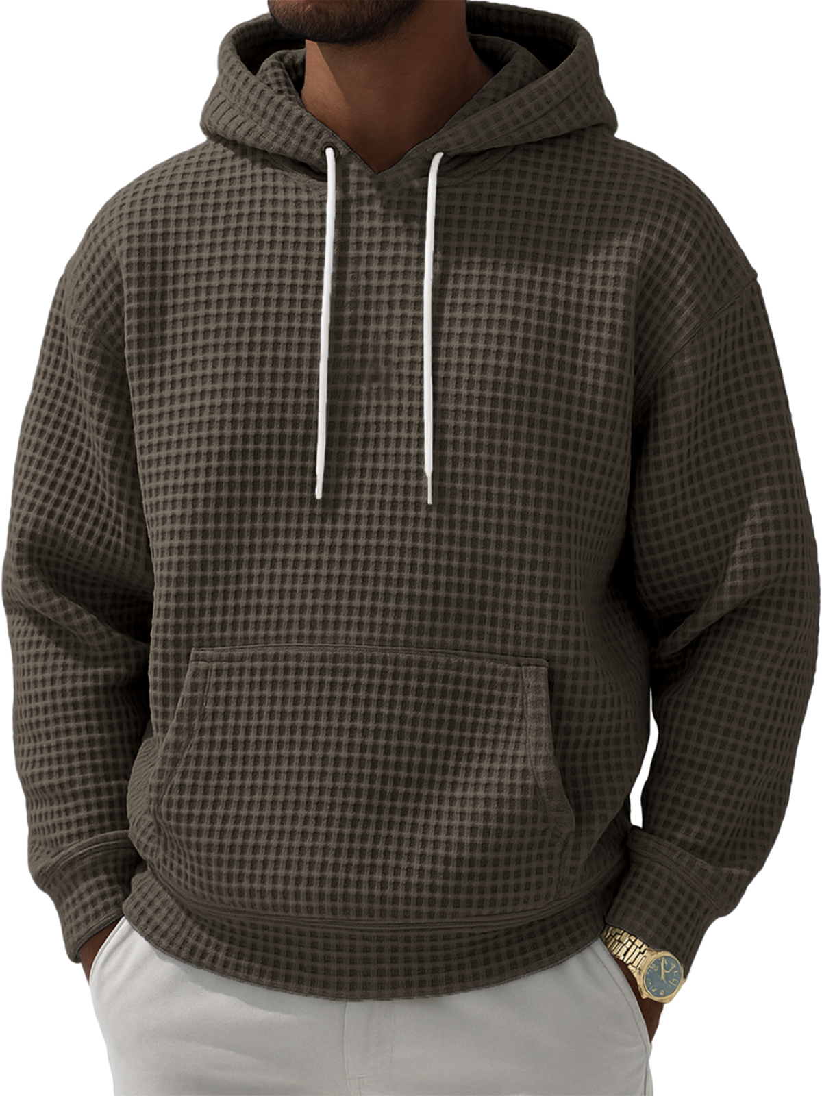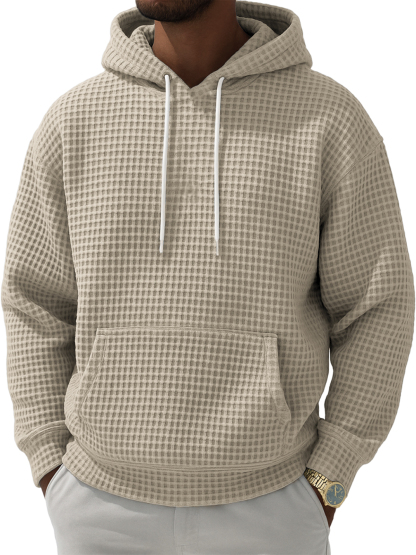 Men's Waffle Texture Casual Pullover Hooded Sweatshirt