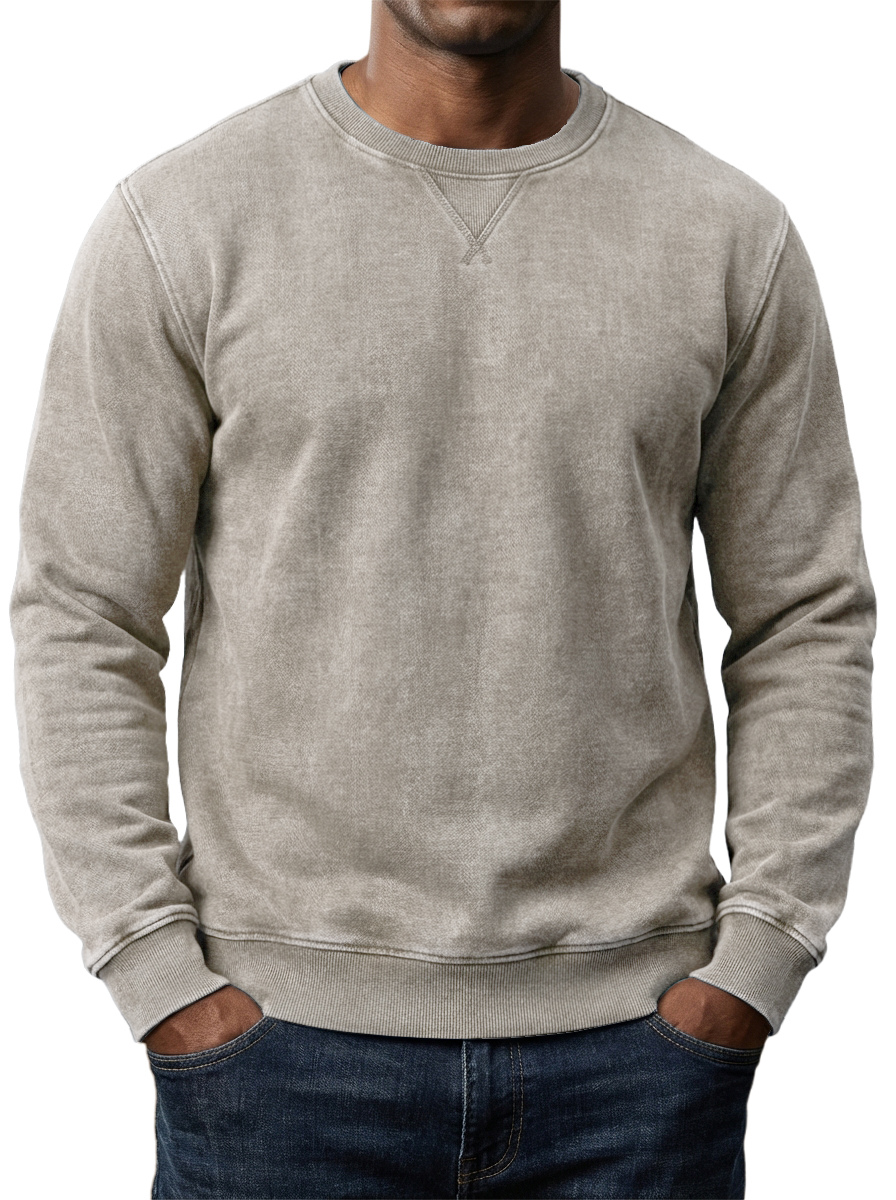 Men's Washed and Distressed Cotton Retro Crew Neck Long-Sleeve Sweatshirt