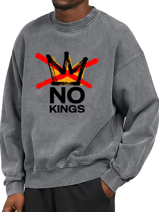 Men's Washed And Distressed Vintage No Kings Print Crewneck Sweatshirt