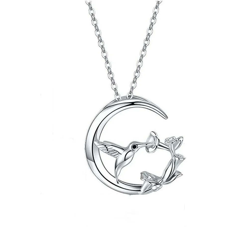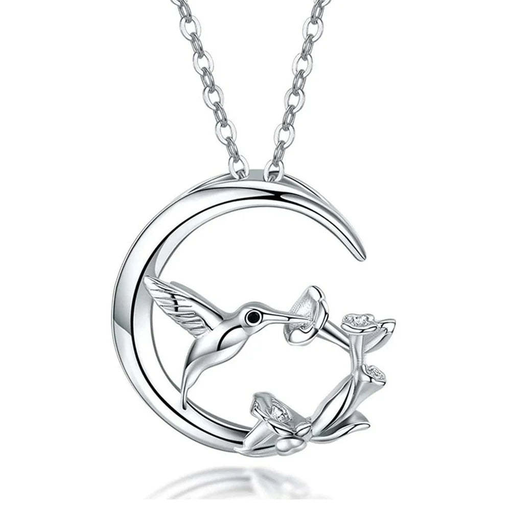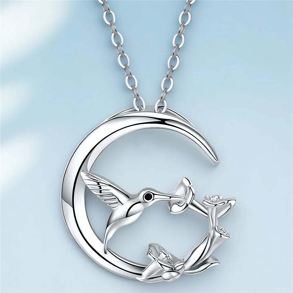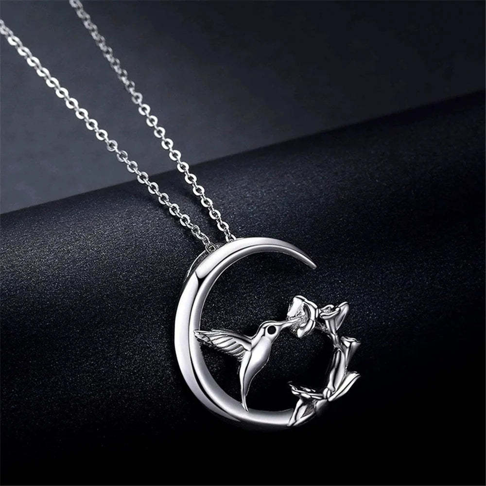 There's something magical about the moment when moonlight catches silver, creating a gentle glow that speaks of quiet nights and whispered dreams. This enchanting pendant captures that ethereal beauty, where a delicate bird takes flight beneath a crescent moon, surrounded by blooming flowers that seem to dance in an eternal spring.