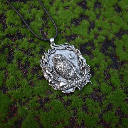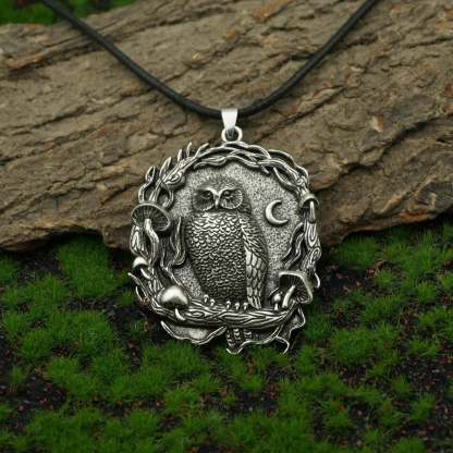 There's something magical that happens when moonlight filters through ancient forests, illuminating wise owls perched among enchanted mushrooms. This captivating pendant captures that ethereal moment—a miniature world where nature's mysteries come alive around your neck.