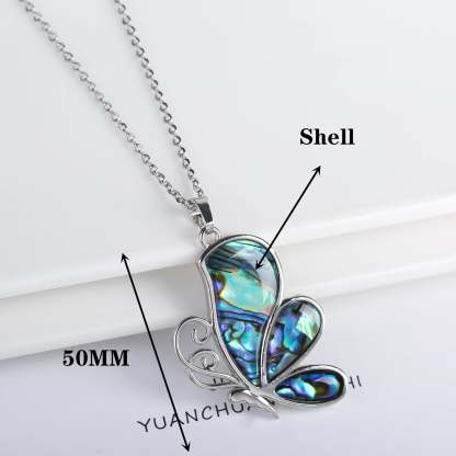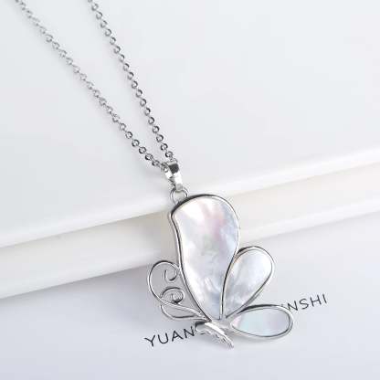 Natural Shell Butterfly Pendant Necklace