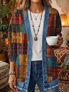 👉 Grab this 2026 women's retro-style lapel wool and denim patchwork coat now and confidently and elegantly welcome winter!