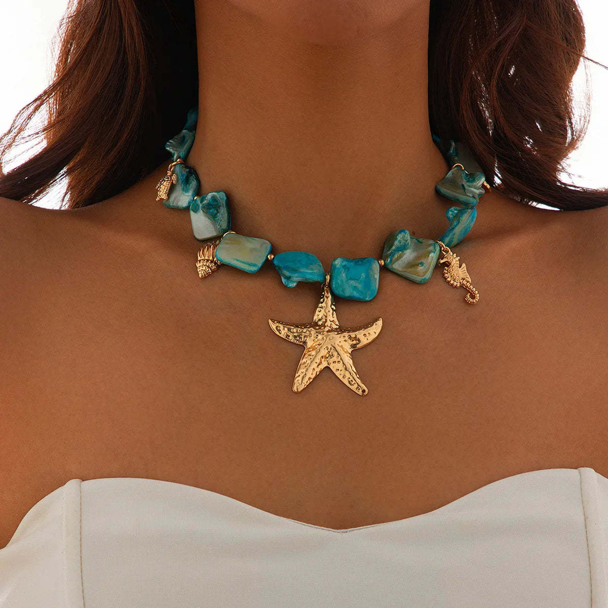 Like the gentle rhythm of waves against the shore, this ocean-inspired necklace captures the serene beauty and endless depth of the sea. Each delicate detail reflects the calming essence of ocean waters, bringing a sense of tranquility and wonder to your everyday moments.