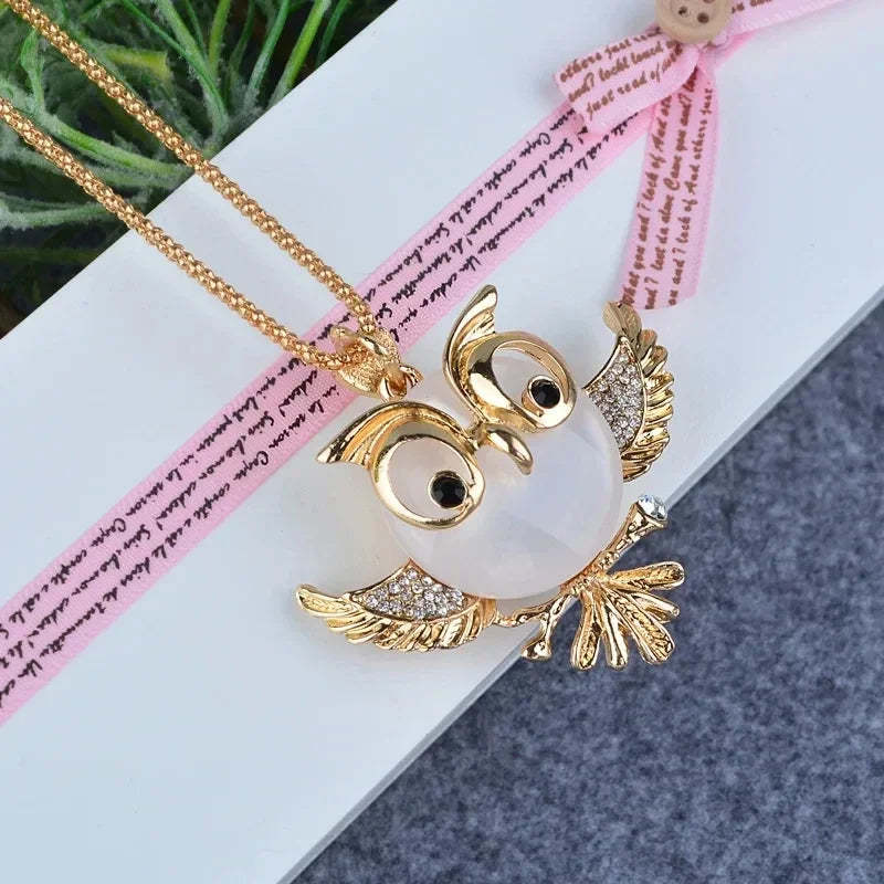 Opal Owl Wisdom Pendant Necklace