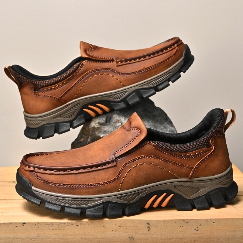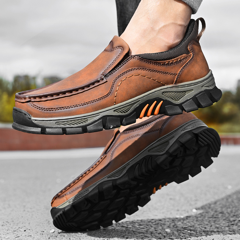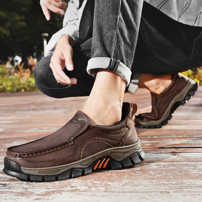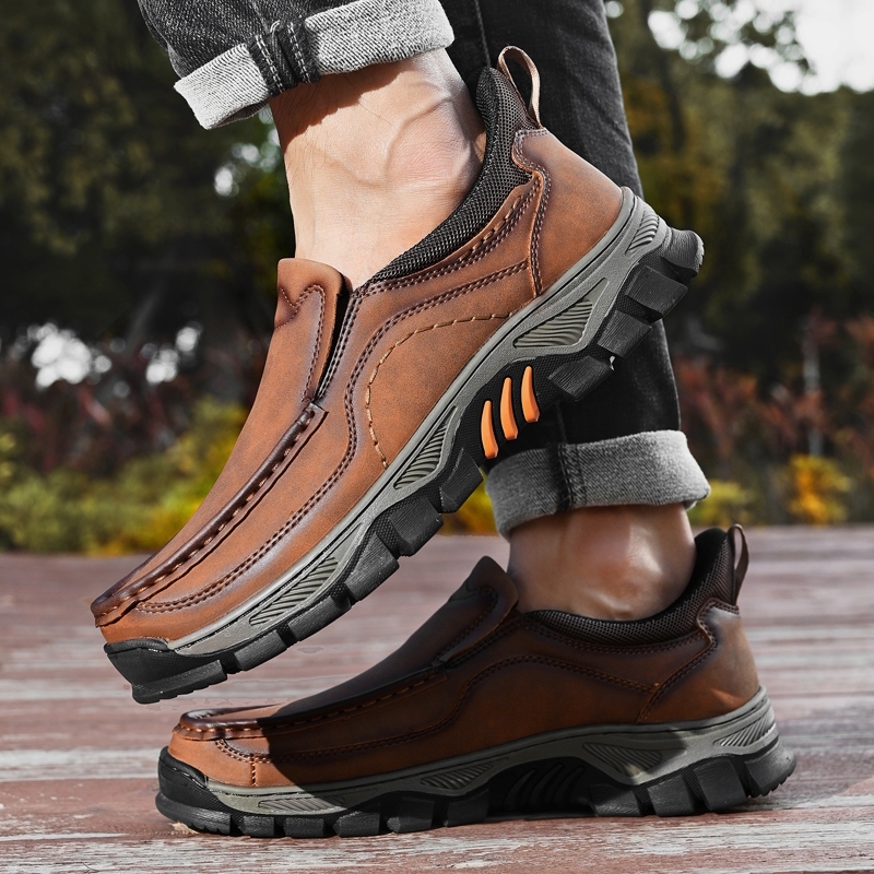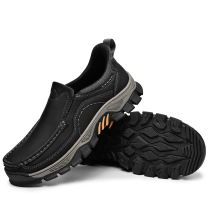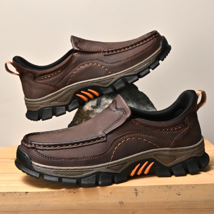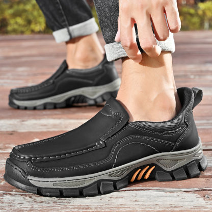 ⏰Promotion - 50% OFF🔥 Men's Wide Toe Slip-On Leather Loafers | Arch Support & Anti-Collision Outdoor Shoes