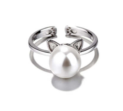 Beautiful Pearl Cat Necklace with Bonus Earrings + Ring