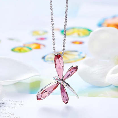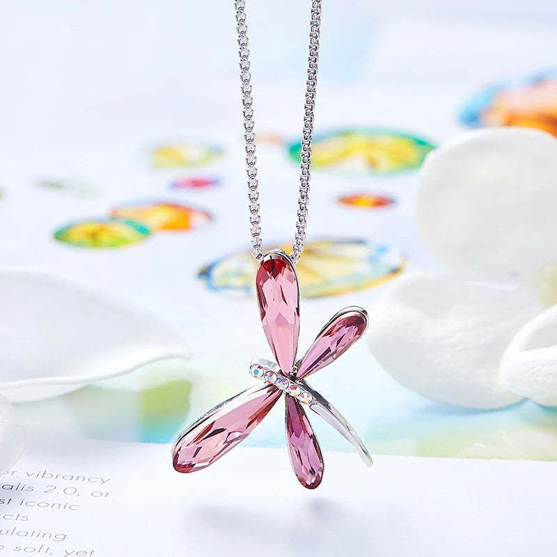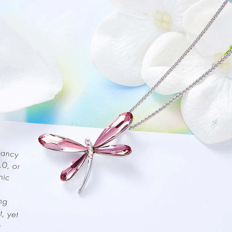 There's something magical about the way light dances through crystal wings, catching moments of beauty that feel both fleeting and eternal. This delicate dragonfly pendant captures that ethereal grace, its soft pink hues reminiscent of spring mornings and whispered promises.