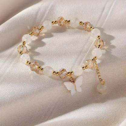 Like a butterfly emerging from its cocoon, this enchanting beaded bracelet captures the essence of transformation and grace. Each faceted bead catches the light differently, creating a dance of colors that mirrors the delicate wings of a butterfly in flight.