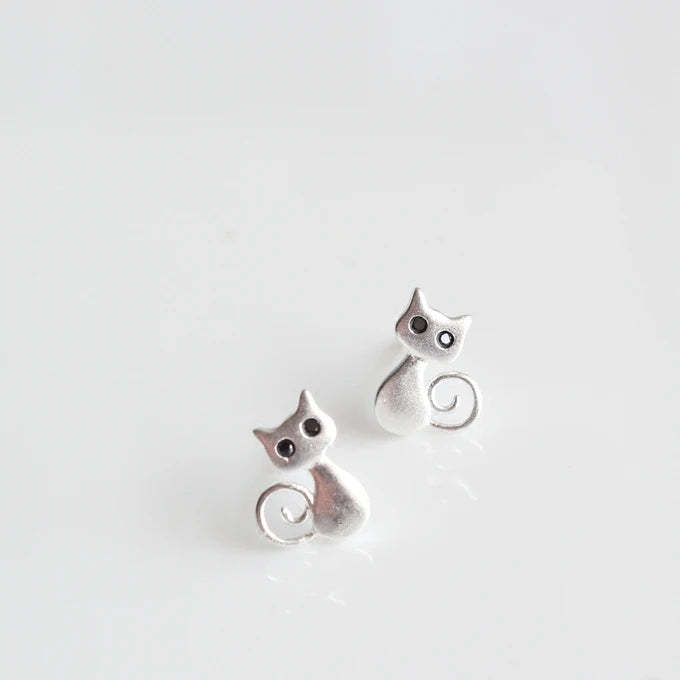 Silver Cat Stud Earrings