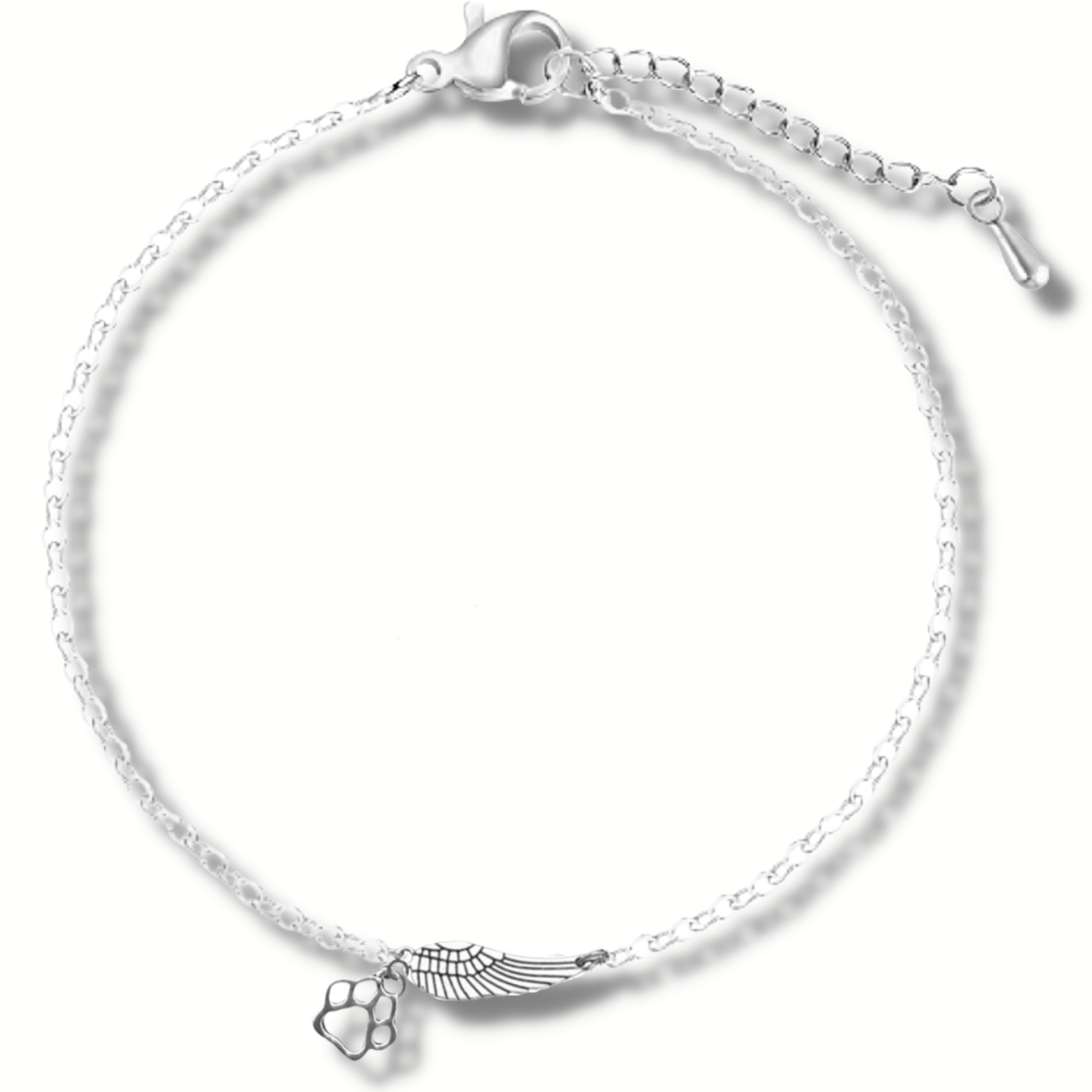 Our Angel Paw Bracelet is a delicate, handcrafted piece that beautifully combines a finely detailed angel wing with a hollow paw print — a heartfelt symbol of the unbreakable bond between you and your beloved pet.