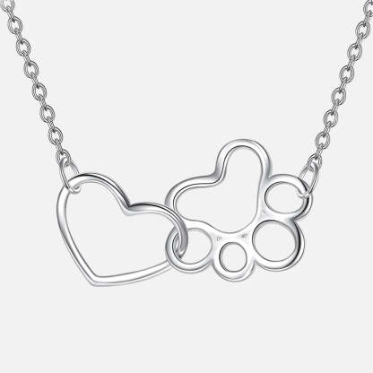 Sterling Silver Paw Print Necklace – Heart Crystal Pendant