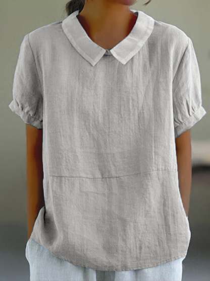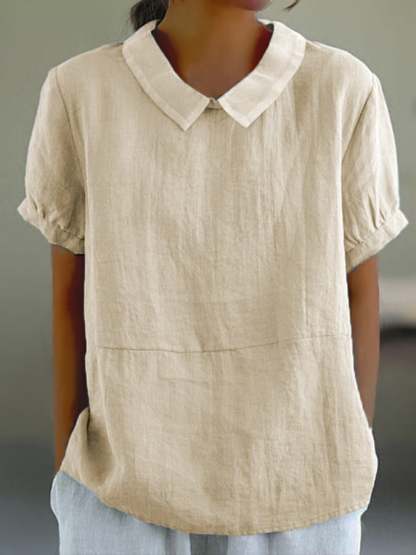 Women’s Cotton Linen Polo Shirt – Casual Short Sleeve Summer Top