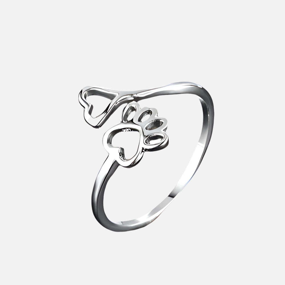 Adjustable Paw & Heart Ring – Stainless Steel