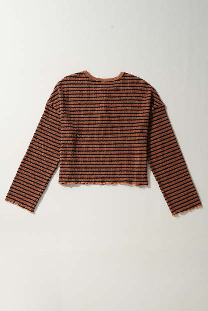 Striped Half Button Long Sleeve Blouse