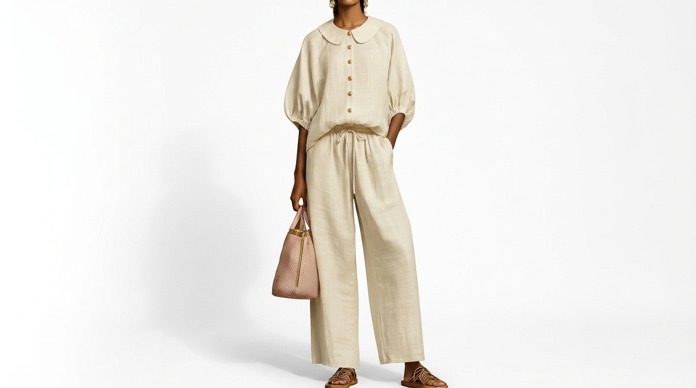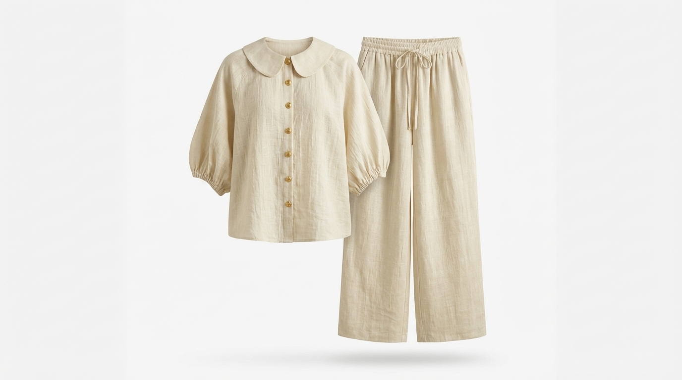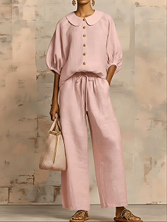 New Arrivals🔥Stylish Peter Pan Collar Shirt And Wide-leg Pant Linen Two-piece Set