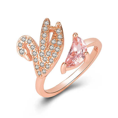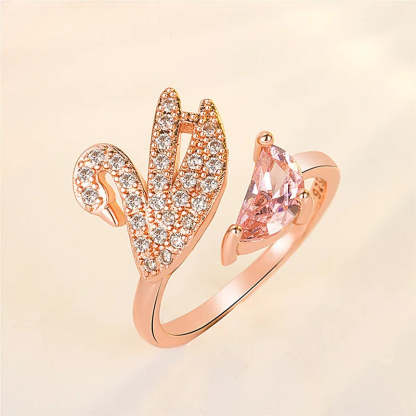 Swan Crystal Ring - Adjustable Rose Gold