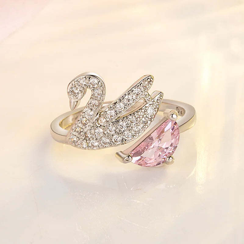 There's something magical about the moment light catches a swan gliding across still water. This delicate ring captures that same ethereal grace, with crystals that dance like morning dew on feathers.