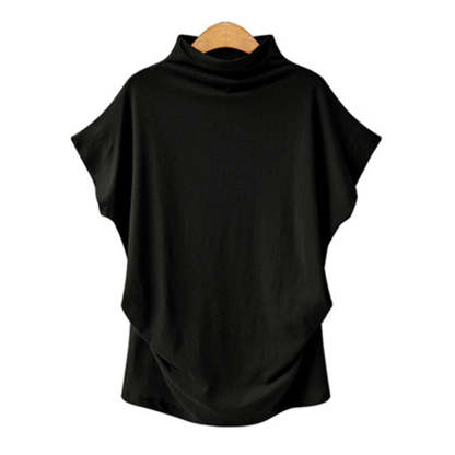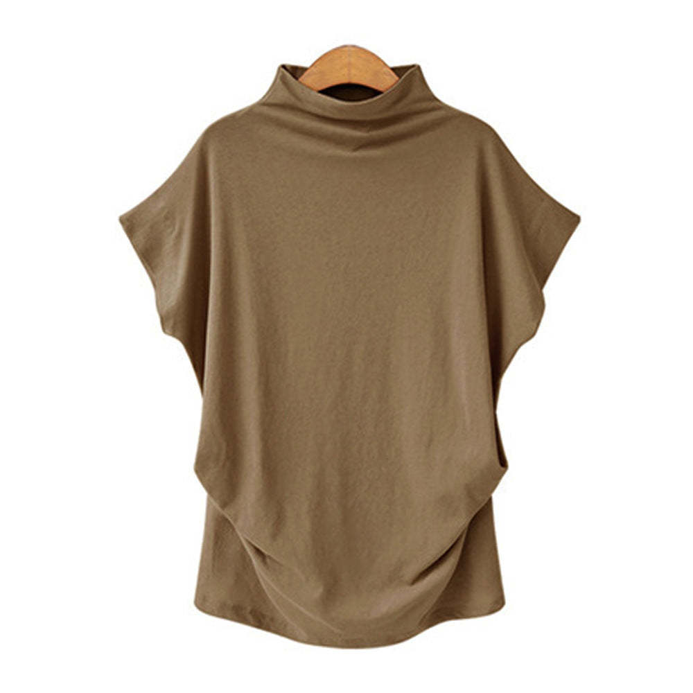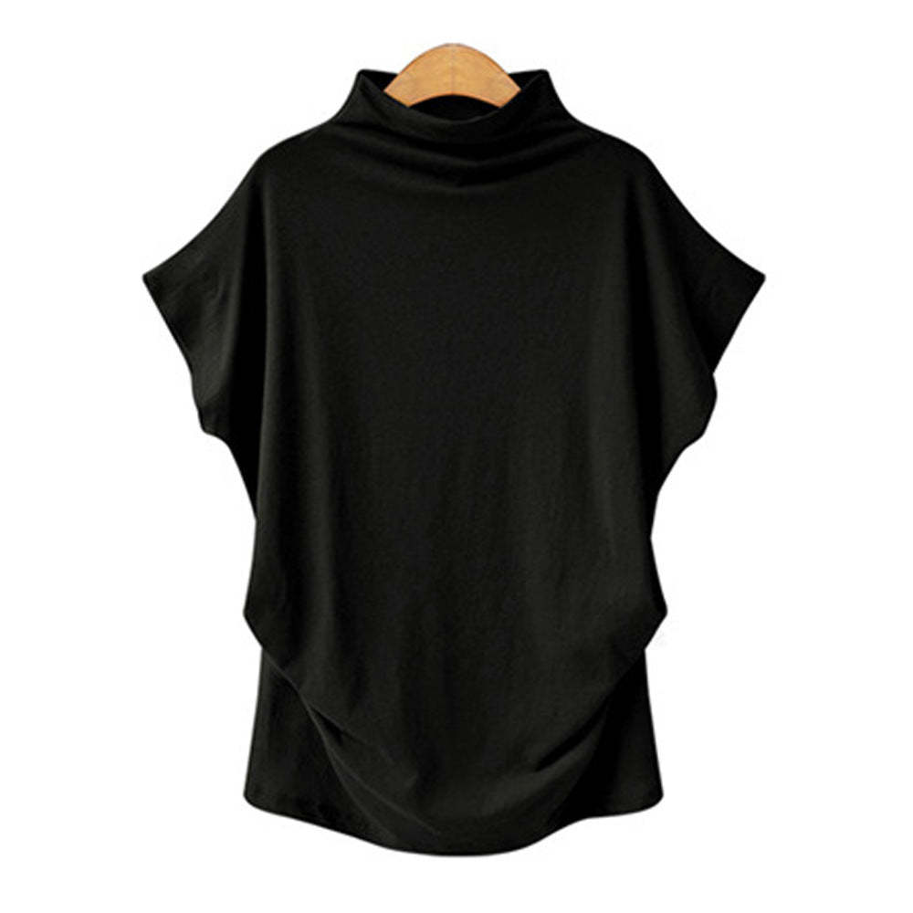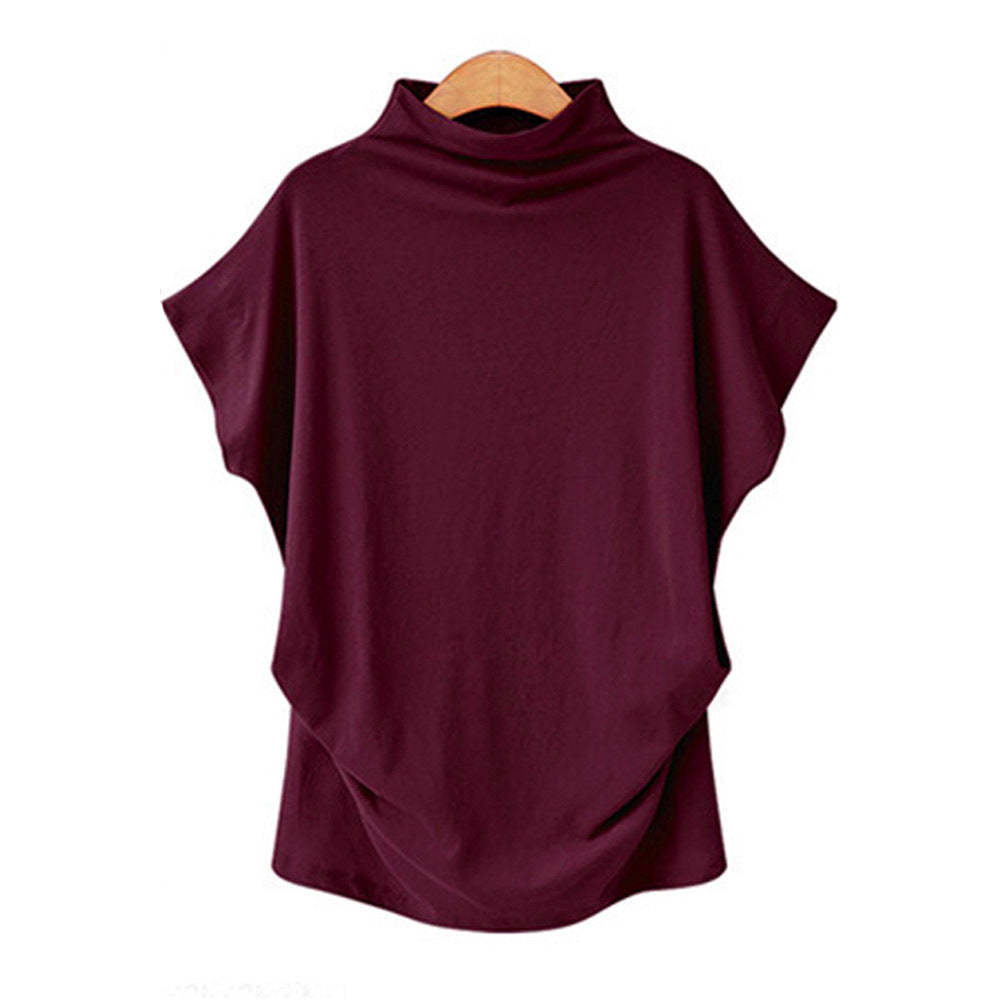 Temperament Commute Large Size Women's Half Turtleneck Batwing Sleeve Solid Color Polyester Top