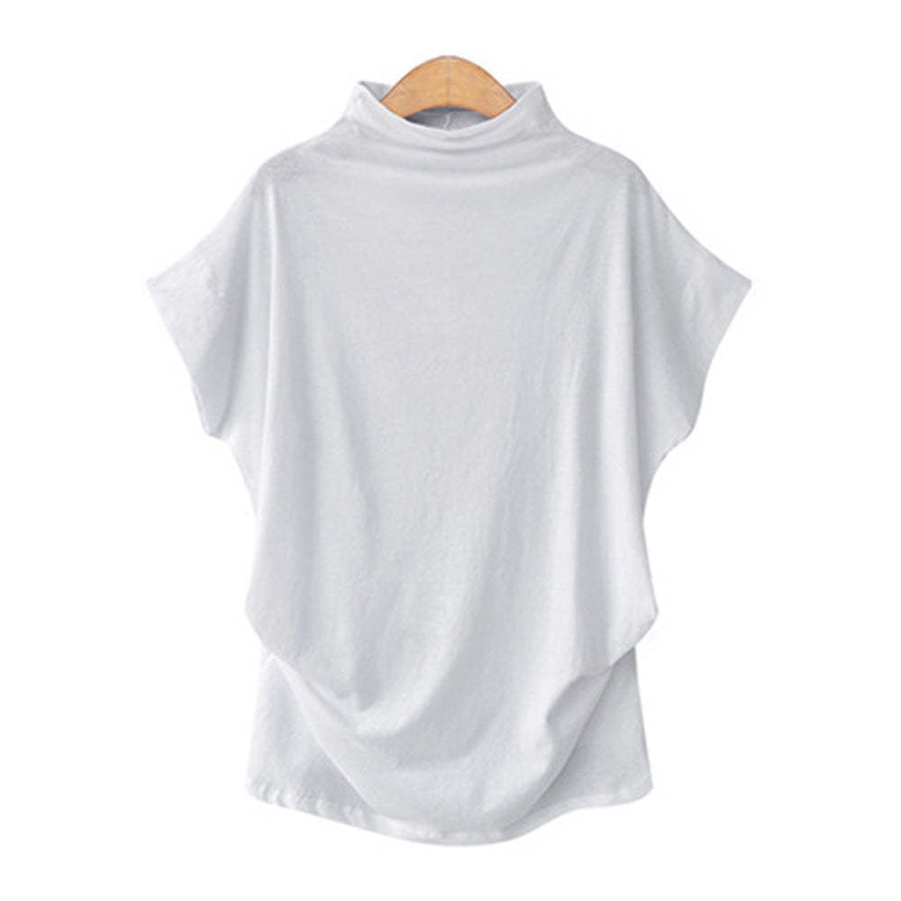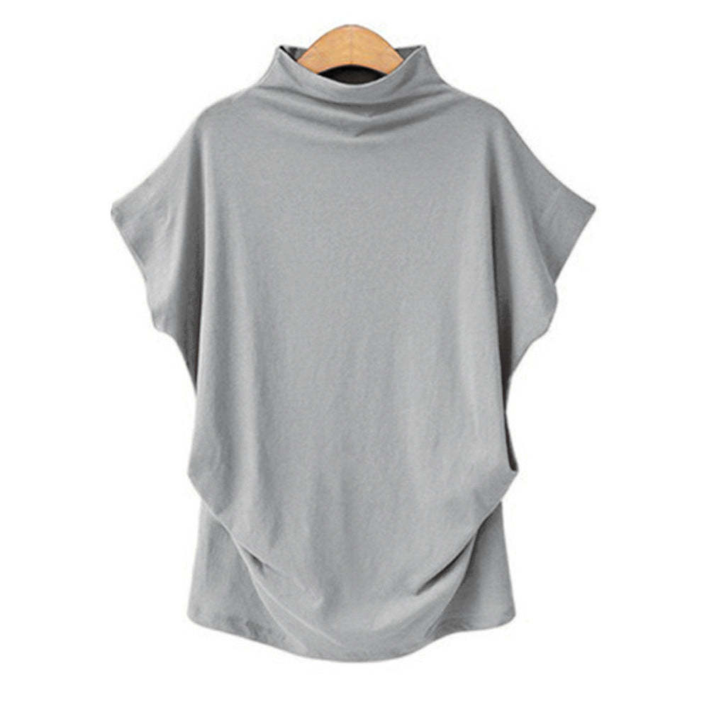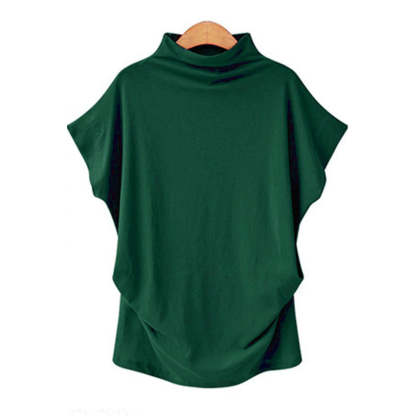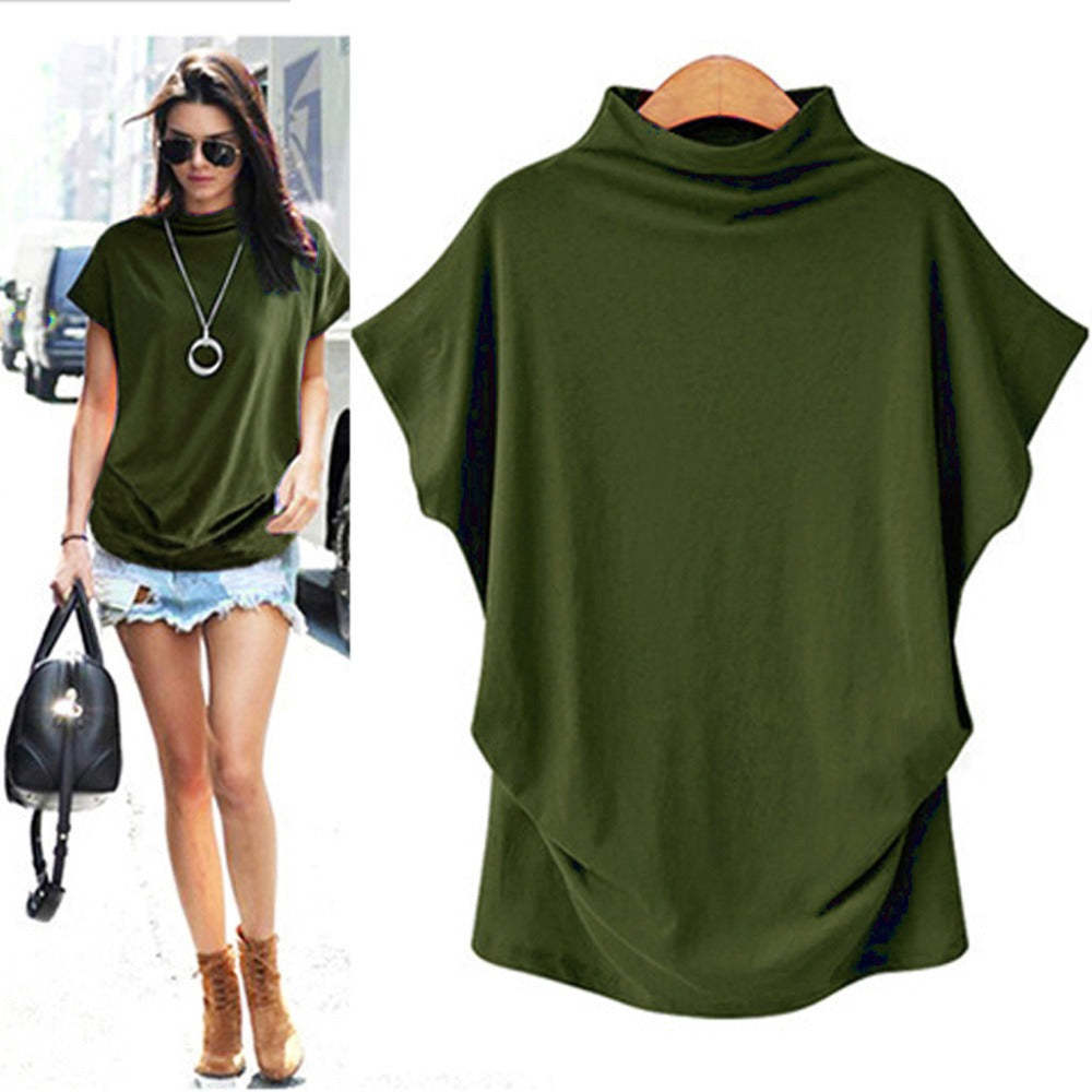 Temperament Commute Large Size Women's Half Turtleneck Batwing Sleeve Solid Color Polyester Top