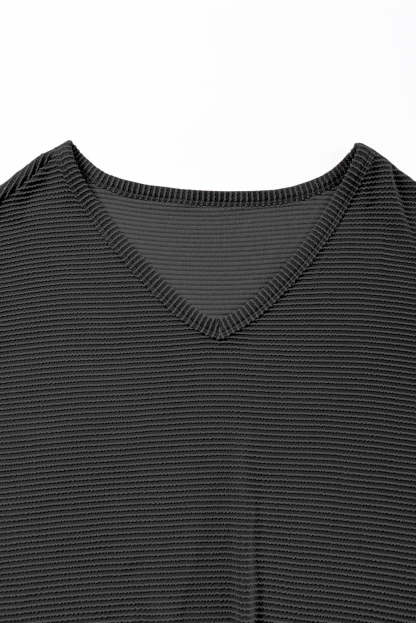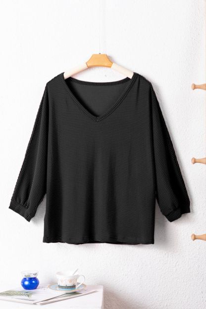 Texture V-Neck Long Sleeve Top