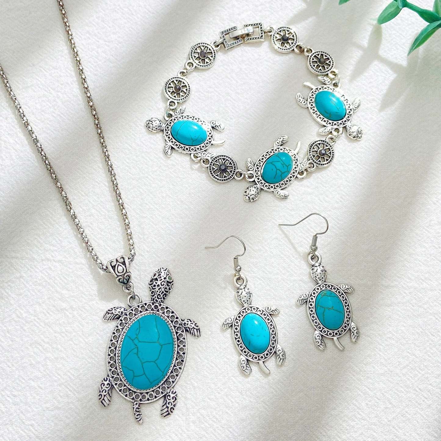 There's something magical about the ancient wisdom of the tortoise, carrying its home wherever it goes, moving through life with gentle persistence. This turquoise tortoise jewelry set captures that serene energy, bringing a touch of ocean calm and earthly grounding to your everyday moments.