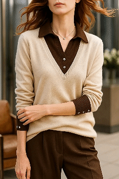 🎄Clearance Sale🔥Women'S Contrasting Knitted Lapel Top
