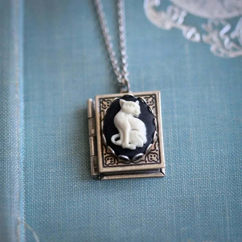 Vintage Cat Book Pendant Necklace – Rotating Page Design