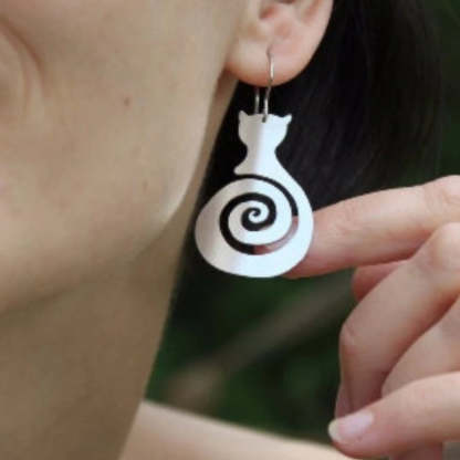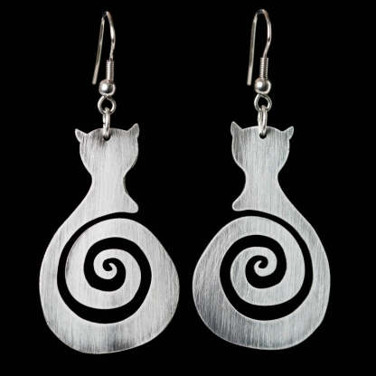 There's something enchanting about the way these delicate cat silhouettes dance with each movement, their spiral forms catching the light like whispered secrets. Inspired by the mystical bond between women and their feline companions, these earrings celebrate the independent spirit and quiet wisdom that cats bring into our lives.