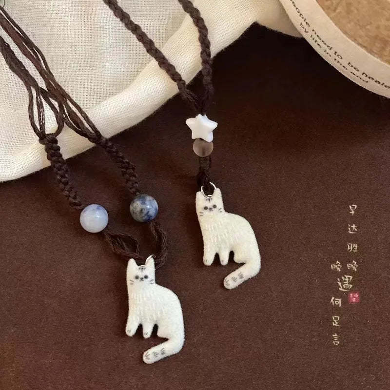 More than just an accessory, this piece speaks to the quiet wisdom of our feline companions—their independence, their mystery, and the comfort they bring to our lives. Each star and bead has been thoughtfully placed to create a dance of light around the gentle cat silhouette, reminding us of those peaceful evenings when everything feels possible.