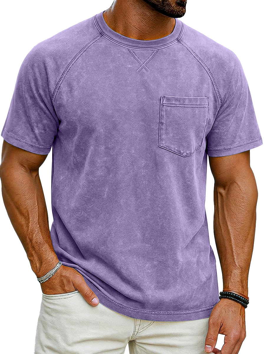 Vintage distressed raglan sleeve short-sleeved crew neck T-shirt